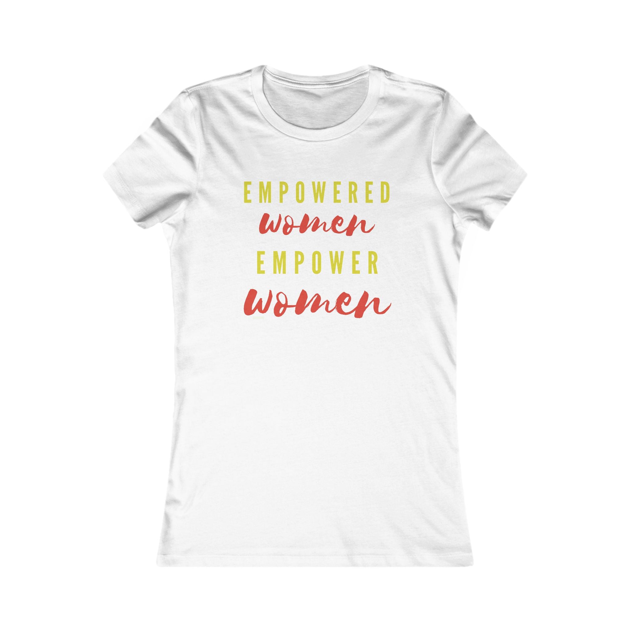 Soft, slim, and quietly bold — this tee carries a simple message: Empowered Women Empower Women. Lightweight and slightly longer in the body, it drapes close to the figure for a clean, modern silhouette that layers easily under a jacket or stands on its own. The ribbed collar and shoulder tape keep shape through wear, while the tear-away label makes it seamless and comfortable against the skin. The warm, two-tone lettering feels approachable and hopeful — a daily reminder to lift others and keep moving forward together.